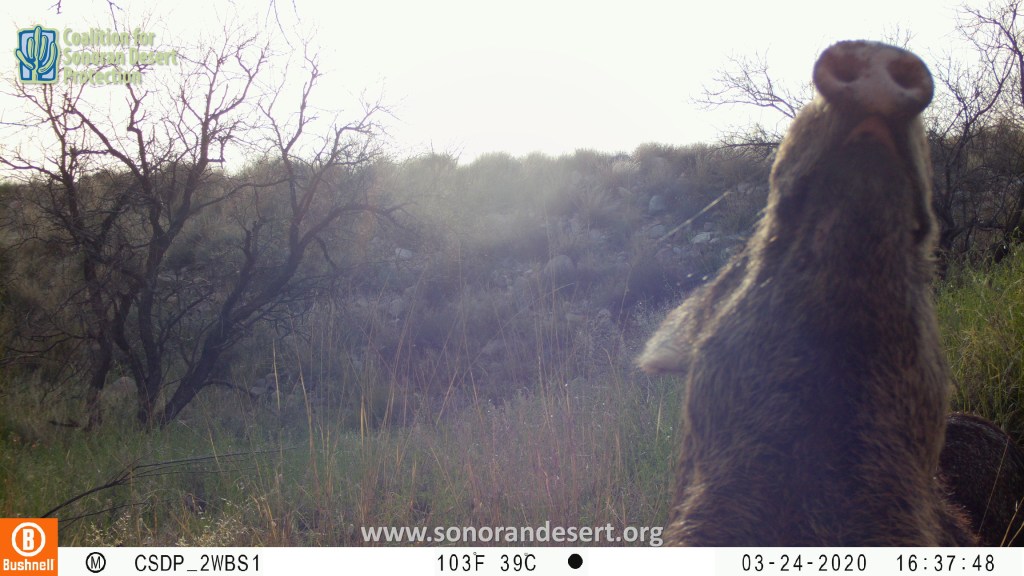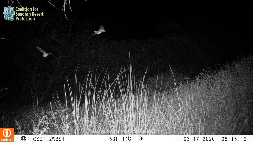 Each time we check our cameras there’s anticipation for what might be captured! Some exciting shots included coyotes, fox, skunk, javelina, deer, a friendly dog, and bats! We’re excited to see how our sites change as we head into our dry summer months followed by monsoon season!