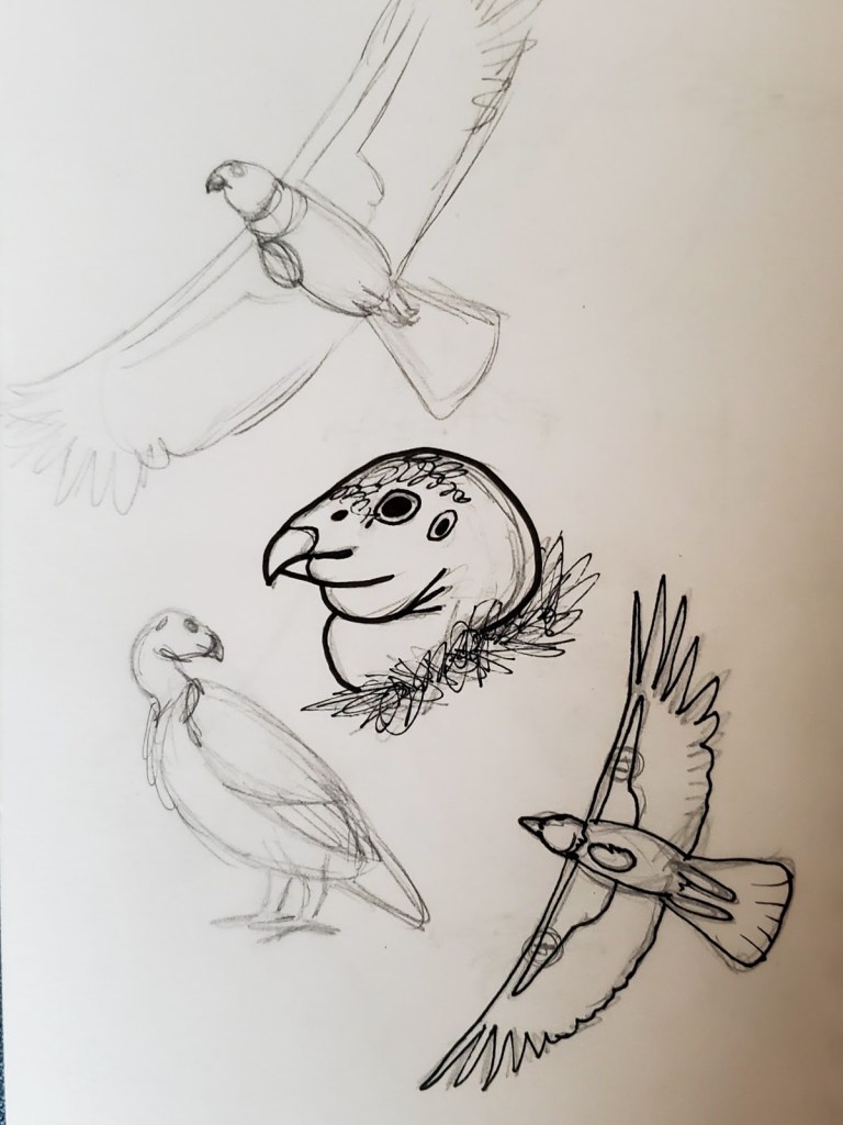 Using these skills I began to create sketches of my subjects. I asked myself questions about what angle, scale, and even phenophase I should use. Should I interpret a bushy plant by drawing one entire bush, a clump of its leaves, or just a single flower? Should I interpret a bird perched calmly or soaring high above?
