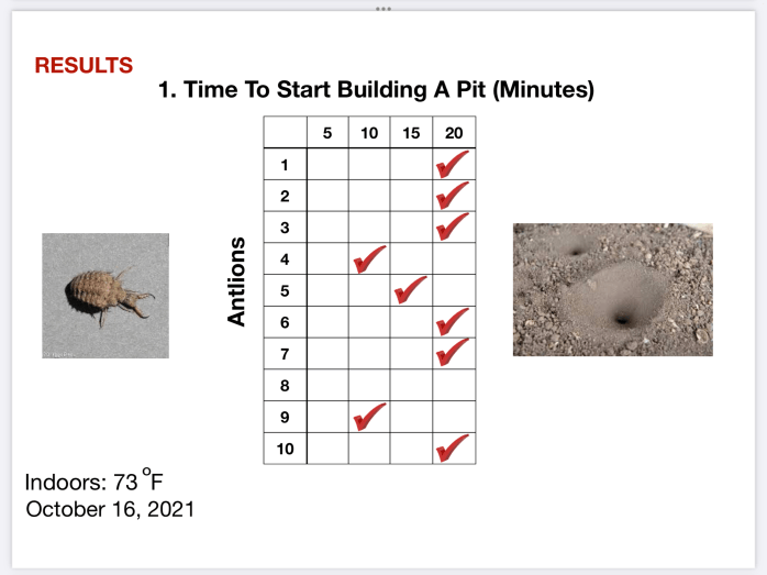 An ad hoc committee consisting of Peggy Ollerhead (C3), Marlene Shamis (C4) and Franklin Lane (C1) was formed to apply for SARSEF sponsorship and ultimately judge eligible projects. Hundreds of projects were triaged electronically for both age group and topic relevancy. A final six were then carefully considered by the committee for the PCMN award. The winner was Myla Closterman, a 2nd grader in Ms. Laura Kupper’s class at Canyon View Elementary School. Myla’s research investigated Antlions (Myrmeleon sp.) and was aptly named “The Lion Project”.