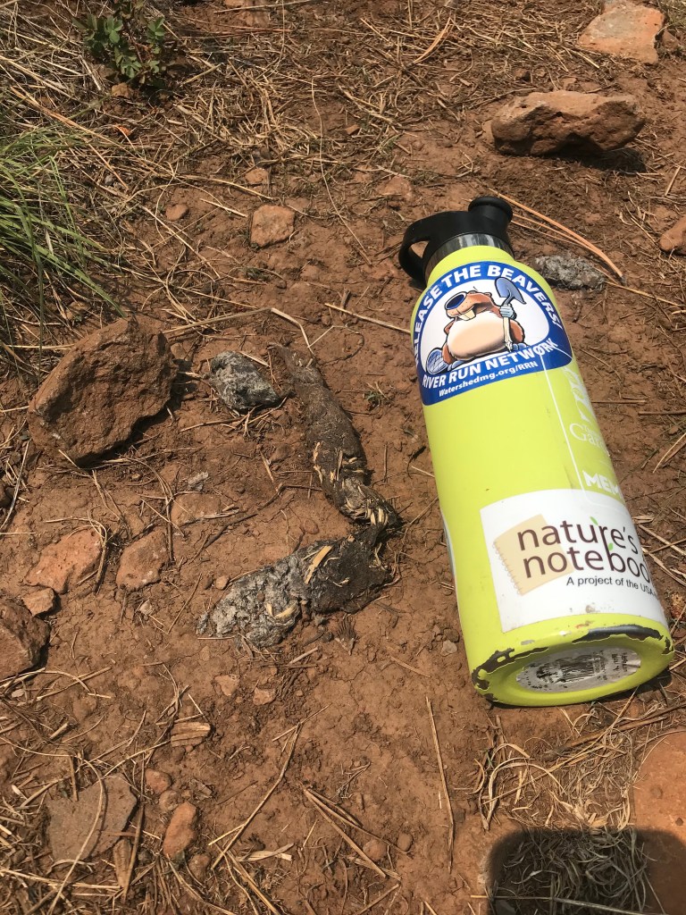 Some mentioned how excited kids were to talk about poop. From my observation kids aren’t the only ones! Hank brought along bags full of different scat so we could compare and contrast each animal’s poop, including cow and horse because they too occasionally roam the area. An animal’s diet is a big factor in identifying scat, as are shape and form. We think we saw fox, bobcat and coyote scat on the trail. Figuring out scat seemed a little easier than tracks and it was certainly easier to see!