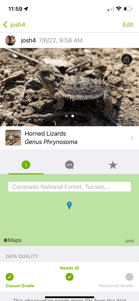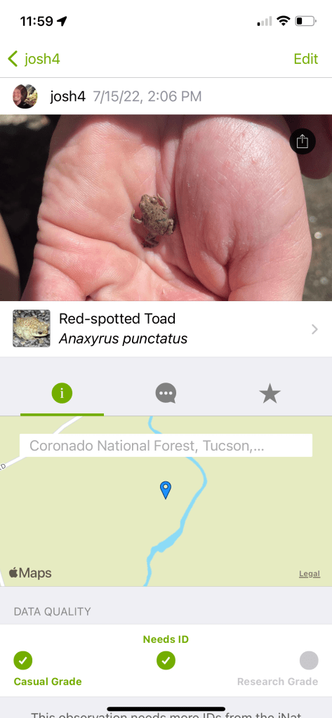 While using these programs on my phone, I have been able to identify and learn about the plants and wildlife in my surroundings wherever I go! I also get to help contribute to science! The Merlin birding app contributes to the ebird data-base. You can learn more about the research and conservation applications via this link here! Inaturalist also share’s their findings with scientific data repositories allowing scientists find and use your discoveries for research! You can learn more via a link here!