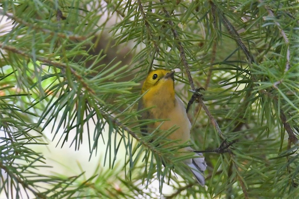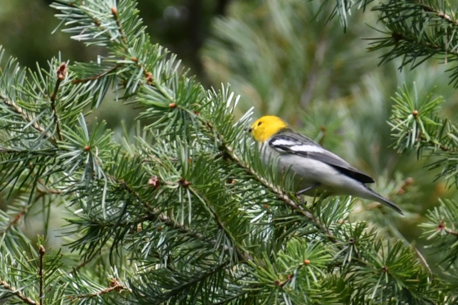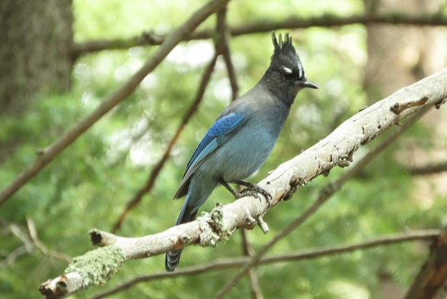 Walking further along the road Stellar Jays were flying about and in a well wooded pull off, a bird I’d never seen before flew into the tree next to me, a female Hermit Warbler. Her mate appeared a short distance away with a yellow head so striking in appearance I was dumbfounded! What Luck!