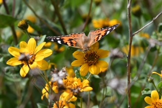 On the summit, painted lady butterflies danced atop the parish goldeneyes. And, sitting on a huge rock was a juvenile Turkey Vulture, feathers resplendent in the morning light.