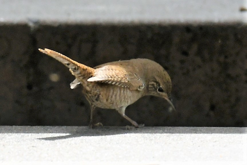 After lunching a House Wren scurried past and landed on the picnic bench along with a Spotted Towhee. And, in a shrub packed area by where we parked a Black-throated Grey Warbler was dining on bugs.
