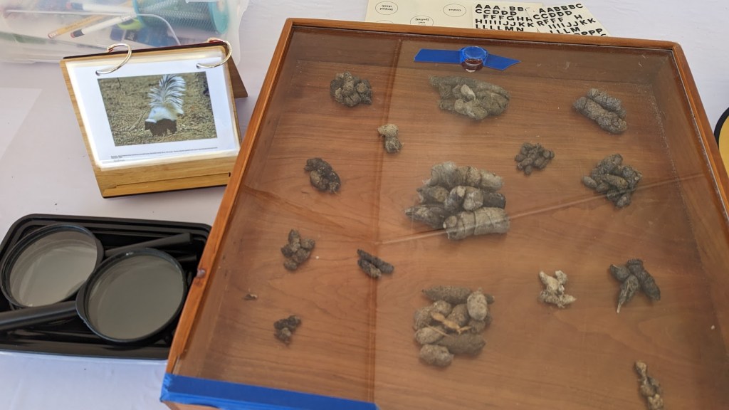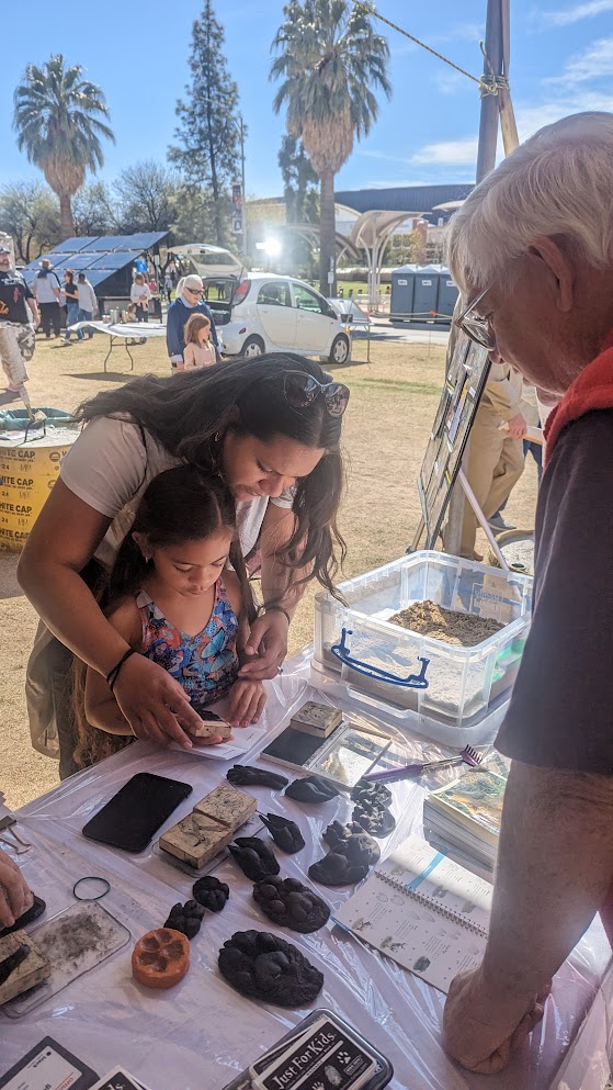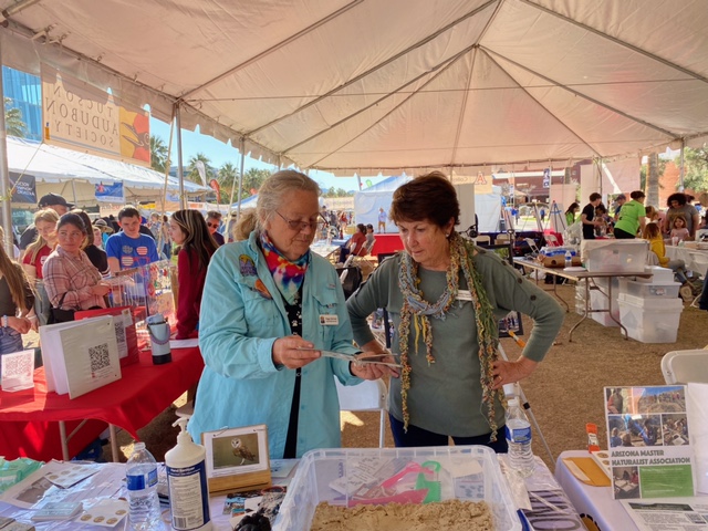 The Pima County Master Naturalists (PCMN) have been watching folks take delight in a beautiful mesquite box full of scat for years. No matter where we are, people make a point of trying to figure out which animals call the places they are visiting in the Sonoran Desert home, based on what they leave behind. So when the opportunity to participate in the TFOB venue with over 180 local and national exhibitors, we were thrilled!