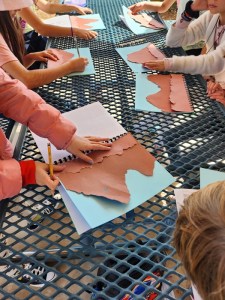 Station one taught students all about bobcats and binocular vision, courtesy of the wonderful group Bobcats in Tucson, where volunteer Gale Sherman explained the adaptations bobcats have evolved as predators, as well as the important information they have gained by radio collaring bobcats. Students then used binoculars to focus on the den site of Dos Picos in the distance. Afterwards, they created layered art of Dos Picos, the land, and the sky behind them. The kids just loved the tearing of paper!