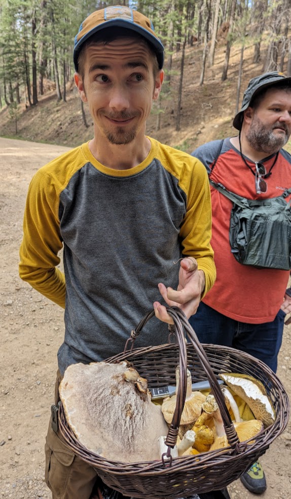 Interested mushroom hunters including four Arizona Master Naturalists from the Pima Chapter (Cameron Becker C2, Kathe Sudano C3, Peggy Ollerhead C3, and Tania Morris C4 Maricopa) joined The Desert Alchemist, Hernan Castro, for a mushroom foraging trip to Mt. Lemmon on September 16th. This trip was a follow-up to the August 14th Advanced Training presentation, titled Identification and Medical Uses of Fungi, that he offered at Brandi Fenton Memorial Park. Participants learned to locate and identify mushrooms and their edible and medicinal uses. Hernan taught field identification strategies, likely mushroom habitats, and methods to distinguish edible from non-edible varieties including the use of scientific test kits that can identify specific types.