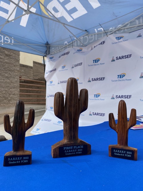 With such a large field, PCMN decided to also award two Honorable Mention Awards of smaller saguaro trophies. Angela Madrid, a sixth grader at Imago Dei Middle School, was recognized for her project “Man-Made Border Wall vs The Natural World.” She gathered information from studies of how animal habits and migration have been impacted by the Border Wall. Greyson Weber, A seventh grader at Dodge Traditional Magnet school was recognized for His project “The AZ Water Crisis” and the website he developed to share sources of information and suggestions for actions that can be taken by the public. Links to winning projects are available on the SARSEF website, listed alphabetically by school.