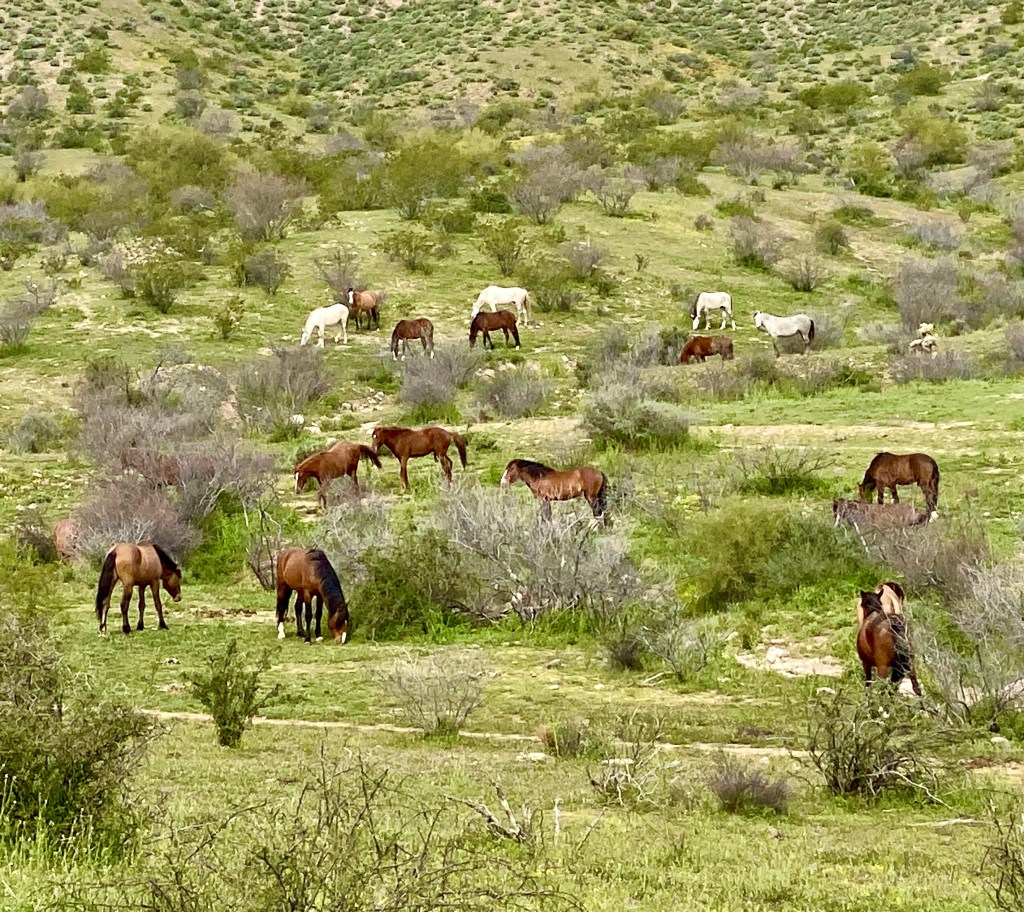 Taking a trip to the lower Salt River to see the wild horses was a dream come true. Leaving early on a Sunday morning in late March from Tucson we drove onto Power Road from Loop 202 which turned into N Bush Highway. At Tonto National Forest we paid our fee for parking so that we would be able to pull out and stop at the various areas to search for the wild horses. Being told that we shouldn’t be disappointed if we didn’t see them on our first excursion, we kept our hopes in check.